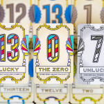 - 13 kart o wartości „13”, specjalnie dla tych, którzy lubią liczyć w pamięci, jakie nominały zostały już zagrane. Na szczęście jedna z nich jest prawdziwie szczęśliwa - możesz ją mieć na ręce z inną „13” i nie odpadniesz z gry!