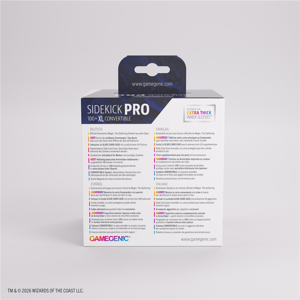 Sidekick PRO 100+ XL to najwyższej jakości pudełko na talie, zaprojektowane z myślą o formacie Commander z gry Magic: The Gathering.