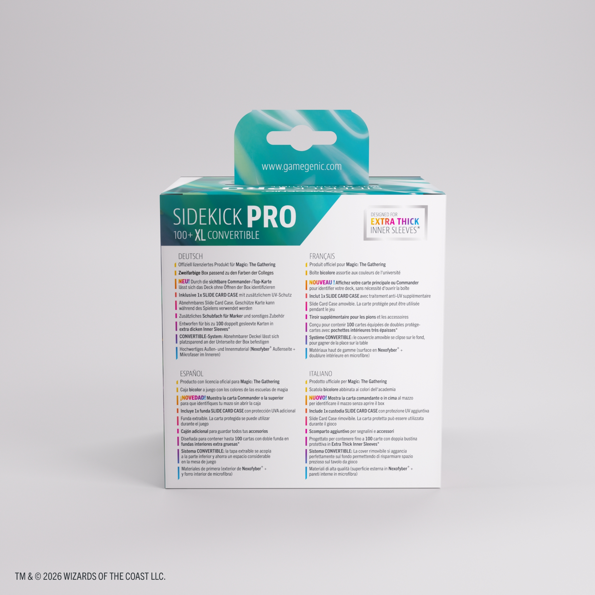 Sidekick PRO 100+ XL to najwyższej jakości pudełko na talie, zaprojektowane z myślą o formacie Commander z gry Magic: The Gathering.