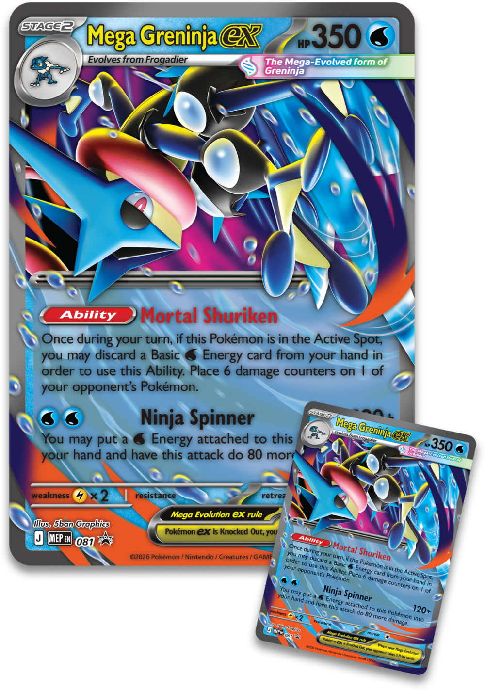 - 1 dużą, lentikularną kartę promo przedstawiającą Mega Greninja ex