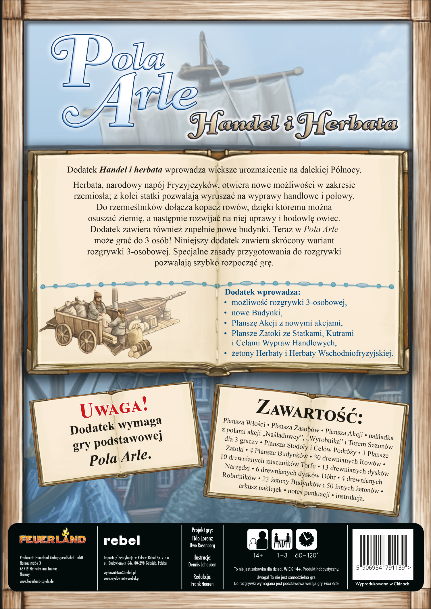 Pola Arle: Handel i herbata to rozszerzenie wprowadzające możliwość rozgrywek trzyosobowych, a także zupełnie nowe strategie do wypróbowania. Herbata, narodowy napój Fryzyjczyków, otwiera nowe możliwości w zakresie rzemiosła; z kolei statki pozwalają wyruszać na wyprawy handlowe i połowy. Do rzemieślników dołącza kopacz rowów, dzięki któremu można osuszać ziemię, a następnie rozwijać na niej uprawy i hodowlę owiec. Dodatek zawiera również zupełnie nowe budynki.