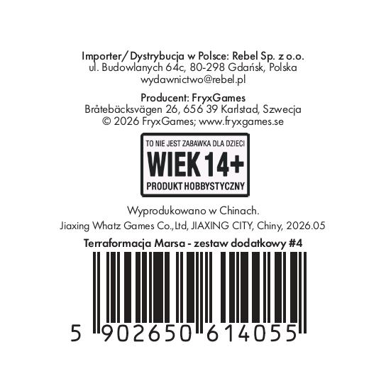 Terraformacja Marsa: Zestaw dodatkowy #4 (20 kart) ( EAN-13: 5902650614055 ) do listy produktów »
