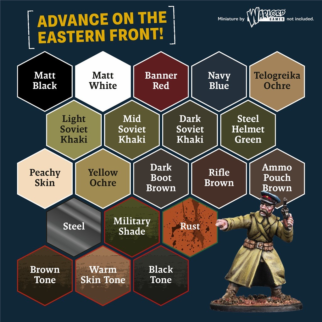 Przenieś się na Wschodni Front i maluj swoje figurki historyczne z wyjątkową dokładnością dzięki zestawowi World War II - Soviet Union Paint Set.