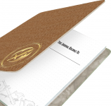 - Skórzany wygląd i eleganckie wykończenie - okładka z materiału typu leatherette, ozdobiona tłoczeniami z folii oraz nadrukiem wewnątrz