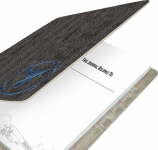 - Skórzany wygląd i eleganckie wykończenie - okładka z materiału typu leatherette, ozdobiona tłoczeniami z folii oraz nadrukiem wewnątrz