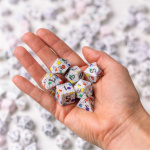 Zestaw kości Full Art: Origin to wyjątkowy zestaw, który oddaje hołd wielościanom – idealnym kształtom, symbolom porządku i nieskończoności. Hipnotyzujące wzory z motywem konturów brył to prawdziwa uczta wizualna, gdzie każdy rzut odkrywa nowy wymiar piękna i perfekcyjnej symetrii.